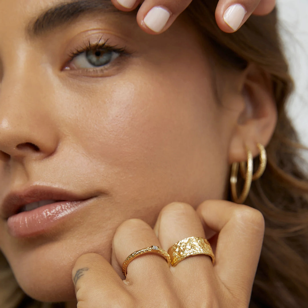 Stacking with a sparkling twist, the Emperor Ring is the perfect crushed gold piece to bring texture and shine to your look.