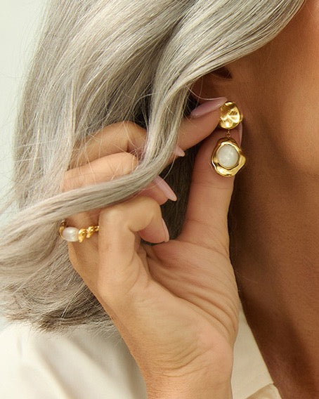 Elegant and classy, the newestFlorentine Earrings will have you turning heads wherever you go! These divine statement drop earrings are elevated and unique in shape, featuring a beautiful Mother of Pearl stone. Florentine are sure to be the finishing touch to your event attire, and are the perfect stand out gift for a loved one!