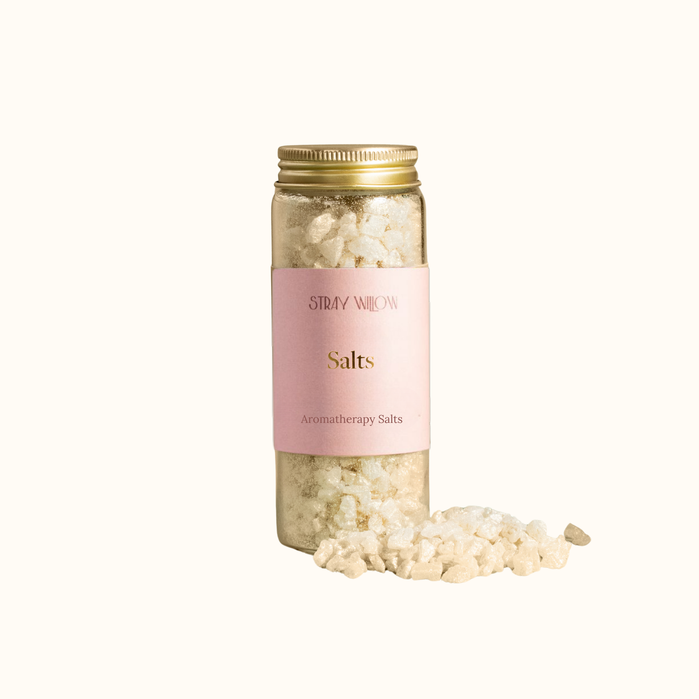 Add a little glow to your self-care with this uplifting aromatherapy salt blend. Made with rock salts, light gold mica, and a mood-boosting trio of Ylang Ylang, Grapefruit, and Vanilla oils, it transforms your bath or shower into a moment of indulgence. A hint of hibiscus powder adds a touch of beauty, while the delicate shimmer it leaves behind gives your skin a soft, radiant finish. Use as a soak or sprinkle in the shower for a fragrant steam.