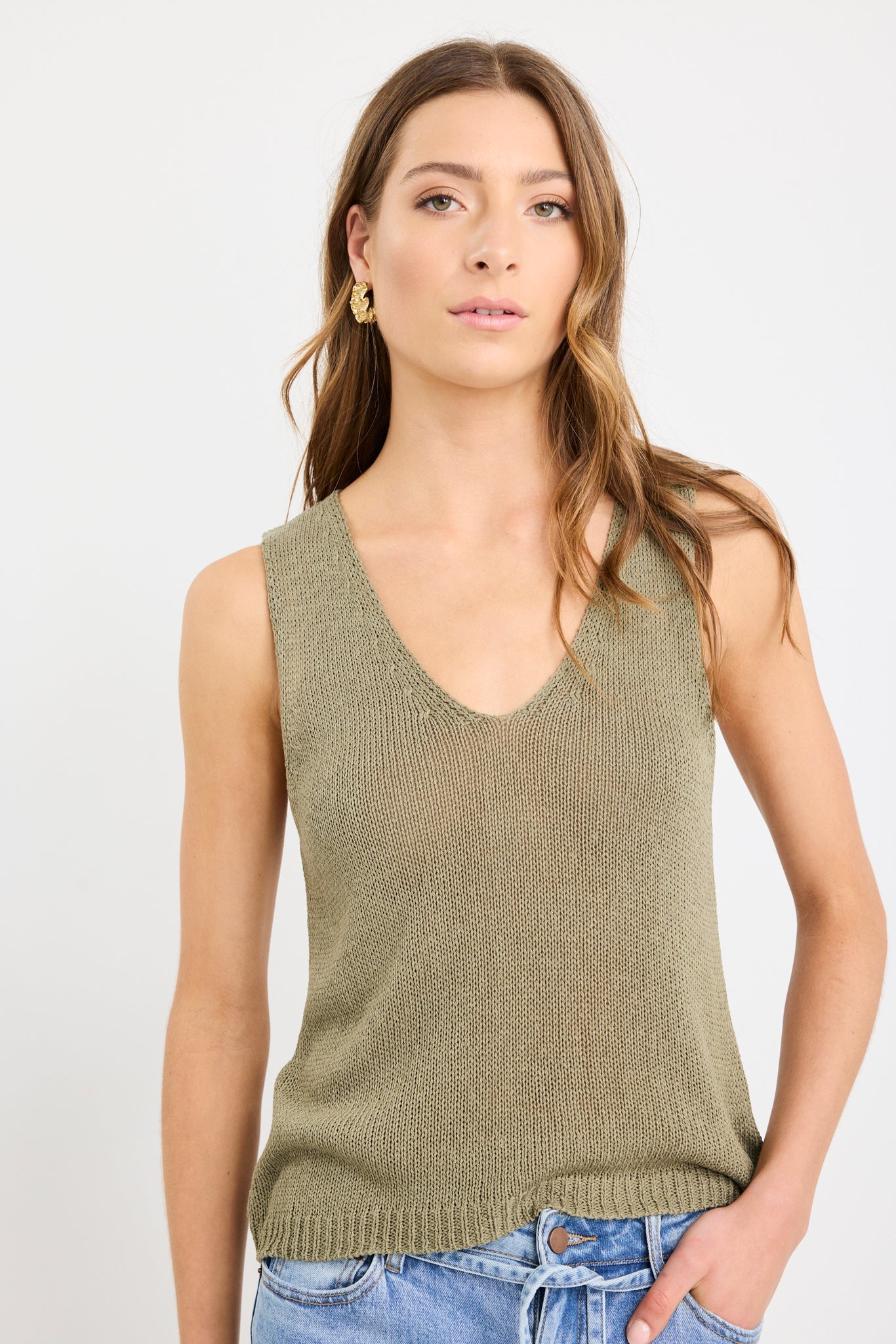The Settler Khaki Knit Top from Stories Be Told blends casual ease with understated elegance. Designed in a relaxed fit with a flattering V neckline, this versatile knit is perfect for layering or wearing solo during warmer days. Its lightweight blend of flax, lyocell, and acrylic ensures softness, breathability, and comfort, making it a wardrobe essential.